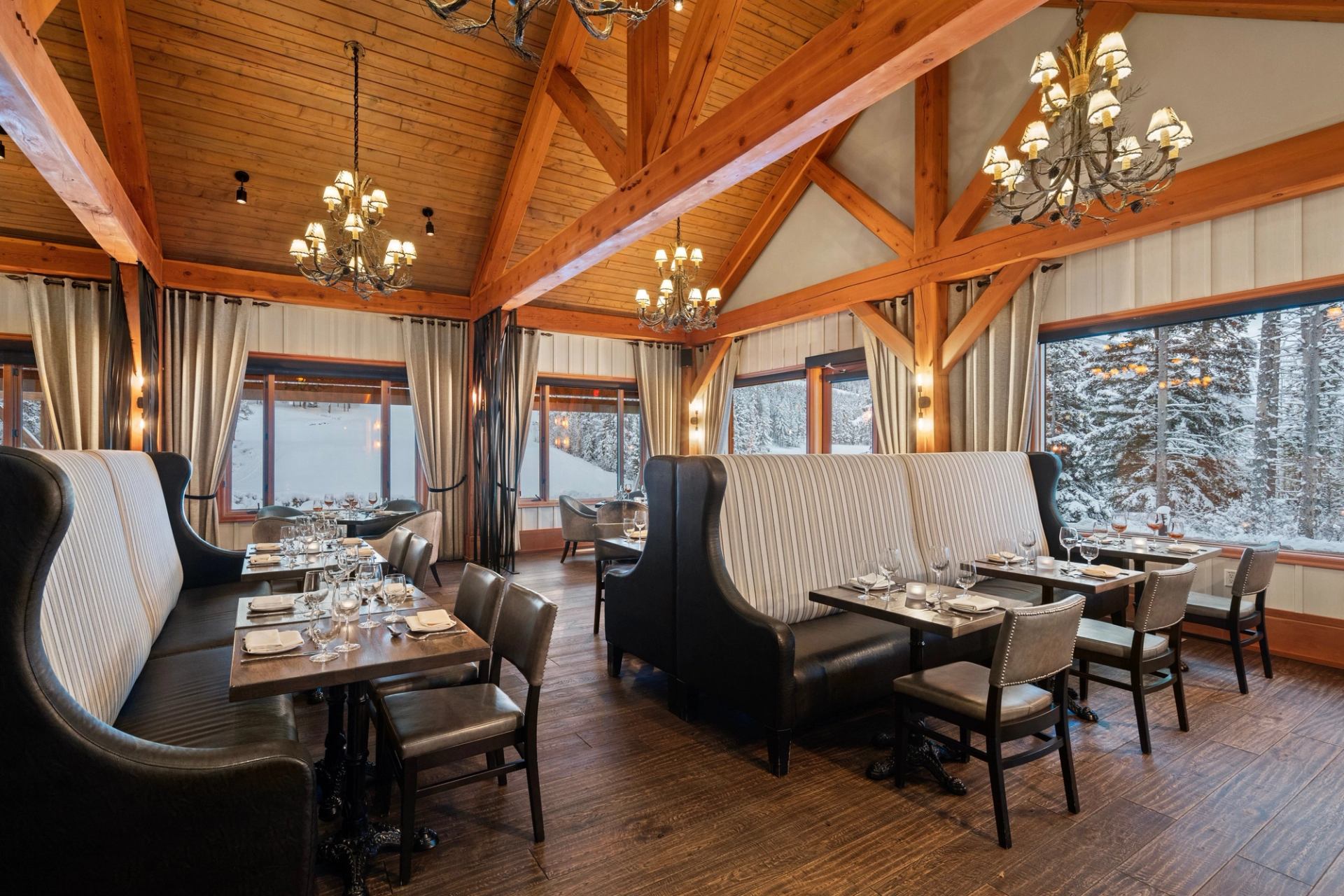 Welcome to Rustica. Where exquisite vistas and extraordinary service meet to inspire a culinary reflection of the world beyond their windows. Dine amongst the Rocky Mountains and Silvertip's World-Renowned Golf Course scenery. Silvertip's Executive Chef, Peter Horlacher, showcases locally inspired and innovative classics, perfect for a night out with friends and family, or a romantic dinner for two. Renowned for their signature Prime Grade Alberta Raised Black Apron broiler specialties and highlighting their Ocean Wise seafood and seasonal Vegetarian dishes. While their noteworthy wine selections and signature cocktails round out your dining experience in the Rustic-inspired space.